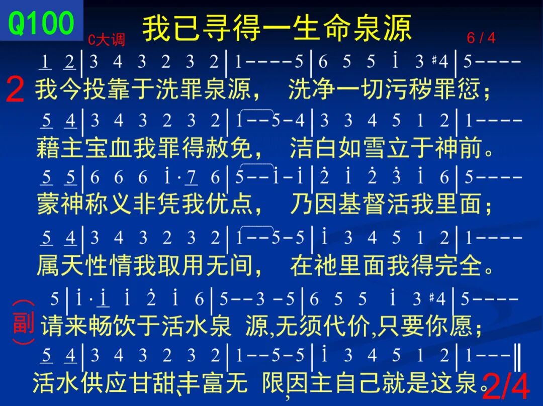 一、 我已寻得一生命泉源,清新活泉流自高天, 脱开属地挣扎与纠缠,欢然饮于以琳爱泉。 何等神圣属天的活泉,在我深处涌流不断, 请来畅饮于活水泉源,无人话语能以尽言。 二、 我今投靠于洗罪泉源,洗净一切污秽罪愆, 借主宝血我罪得赦免,洁白如雪立于神前。 蒙神称义非凭我优点,乃因基督活我里面, 属天性情我取用无间,在祂里面我得完全。 三、 恩主也是我医治泉源,作我秘诀供应无限, 远超人智慧所及所见,也非财富可以兑现。 这医治活泉神圣完全,流自救主被刺肋边, 他受鞭伤使我得康健,又来安家在我心间。 四、 我爱畅饮于喜乐泉源,作我力量溢我心田, 主是我日光辉娘灿烂,我的欢欣在祂里面。 草木荣华转眼即凋残,人间宴乐短似云烟, 主作我喜乐从未消减,以神为乐在地如天。 副: 请来畅饮于活水泉源,无须代价只要你愿。 活水供应甘甜丰富无限,因主自己就是这泉。