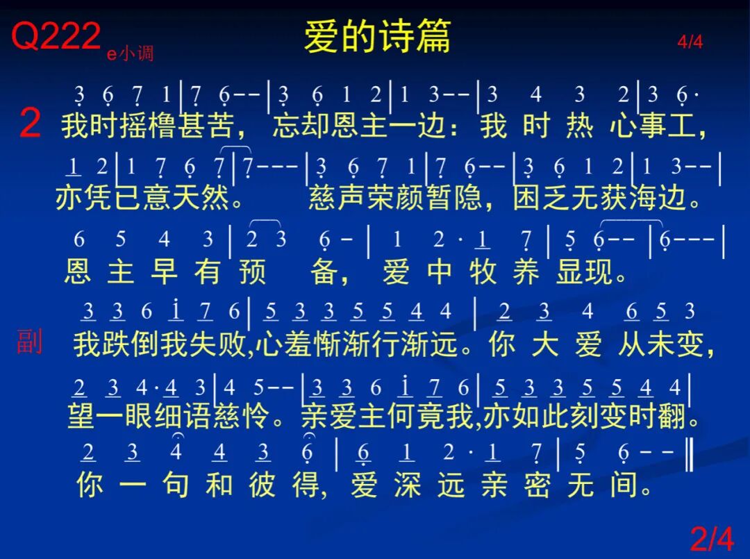 副:二我跌倒 我失败,必羞惭渐醒渐远。你大爱从未变,望一眼细语慈怜。亲爱主 何竟我,亦如此刻变时翻。你一句和彼得,爱深远 亲密无间。新复兴 新天地 新人颂新诗 新篇