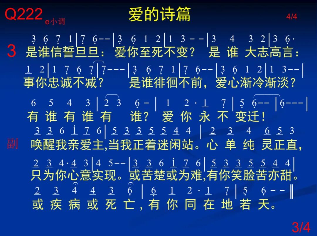 三:是谁信誓旦旦,爱你至死不变?是谁大至高岩,事你忠诚不减?是谁徘徊不前,爱心渐冷渐淡?有谁有谁有谁?爱你永不变近!