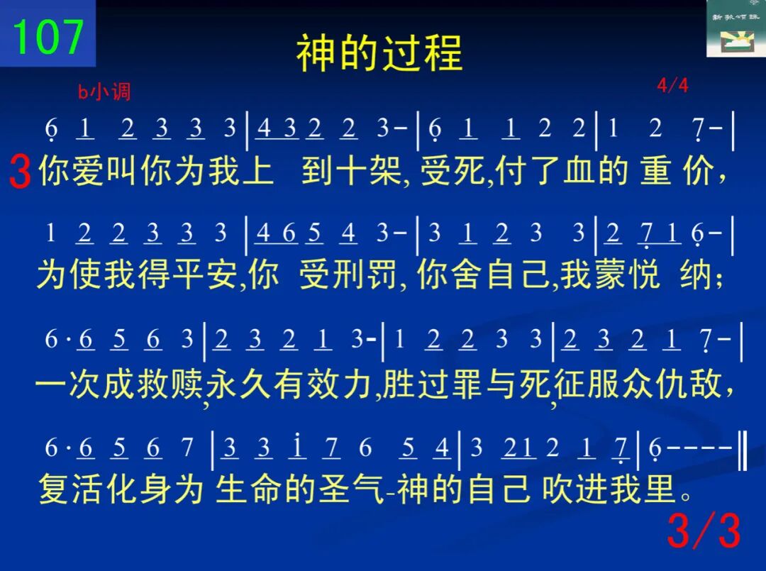 主阿,你在日期满足之时,为我降卑,亲临尘世,从灵成孕,穿上人的样式,作一人子,甘受限制;你名是耶稣,救我脱罪恶,称以马内利,神与人调和,为行你旨意,历尽人坎坷,忠信、完全,因父活着。 二 看哪,神的一切神格丰满,有形有体住你里面,神的神圣本质藉你表现,神心神爱从你彰显;你的心是爱,你口中有恩,来寻找、拯救失丧的灵魂,带我这迷羊归回神羊群,怀我、接我进神救恩。 三 你爱叫你为我上到十架,受死,付了血的重价,为使我得平安,你受刑罚,你舍自己,我蒙悦纳;一次成救赎,永久有效力,胜过罪与死,征服众仇敌,复活化身为生命的圣气-神的自己吹进我里。