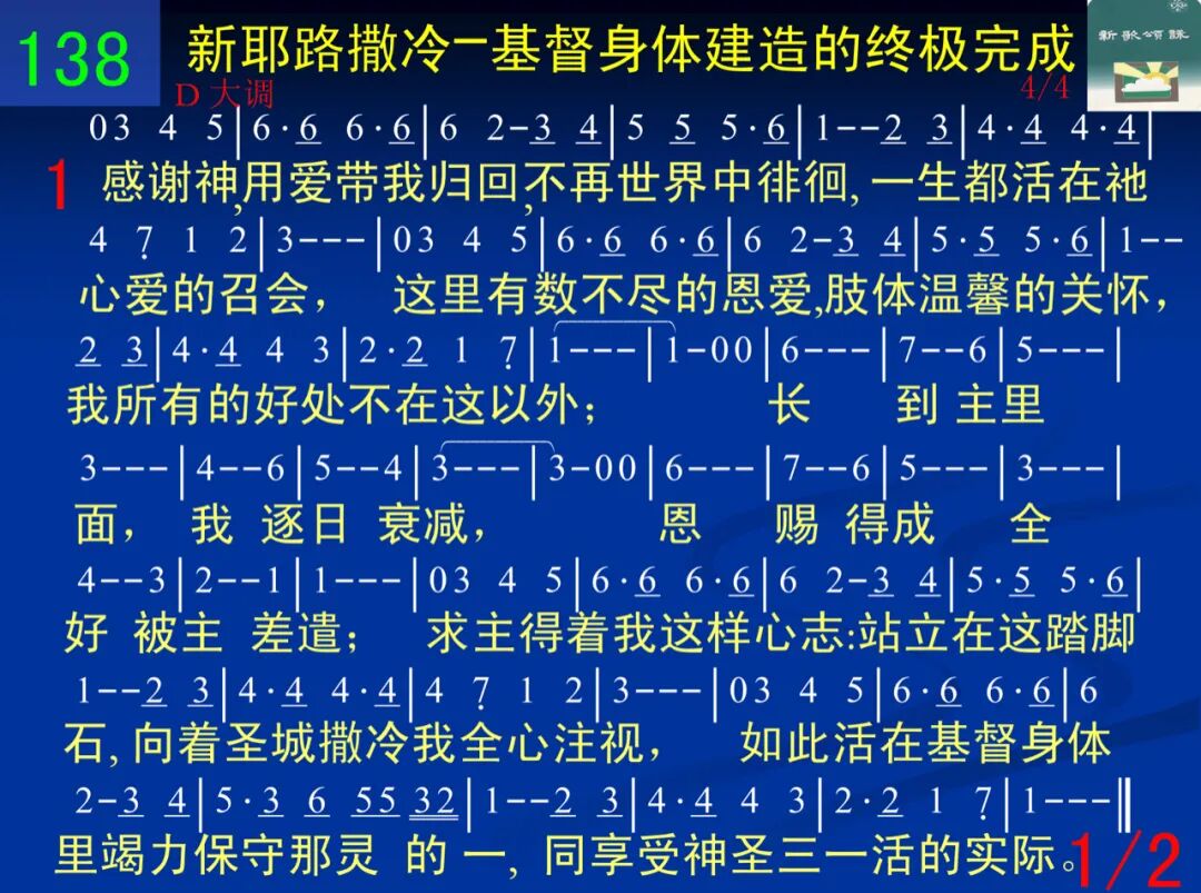 感谢神,用爱带我归回,不再世界中徘徊,一生都活在祂心爱的召会,这里有数不尽的恩爱,肢体温馨的关怀,我所有的好处不在这以外;长到主里面,我逐日衰减,恩赐得成全站立在这踏脚石,向着圣城撒冷我全心注视,如此活在基督身体里,竭力保守那灵的一,同享神圣三一活的实际。 二 同来尽新约祭司职分,献上得救的罪人,供应基督生命好喂养他们,在灵里照耀神圣的光,祷告中献上馨香,好实现祂的权益是我愿望;主,愿你扩增,在我身作工,好终极完成新耶路撒冷;看我们众人同心合意,不久基督身体得实现,神的帐幕显在人间,神与人互为居所直到永远。