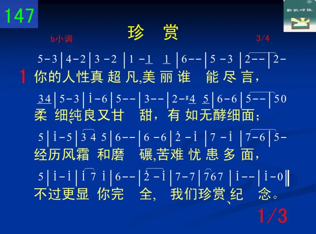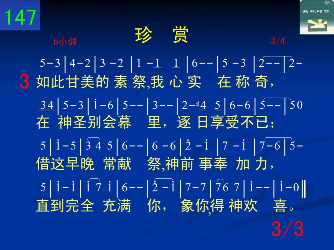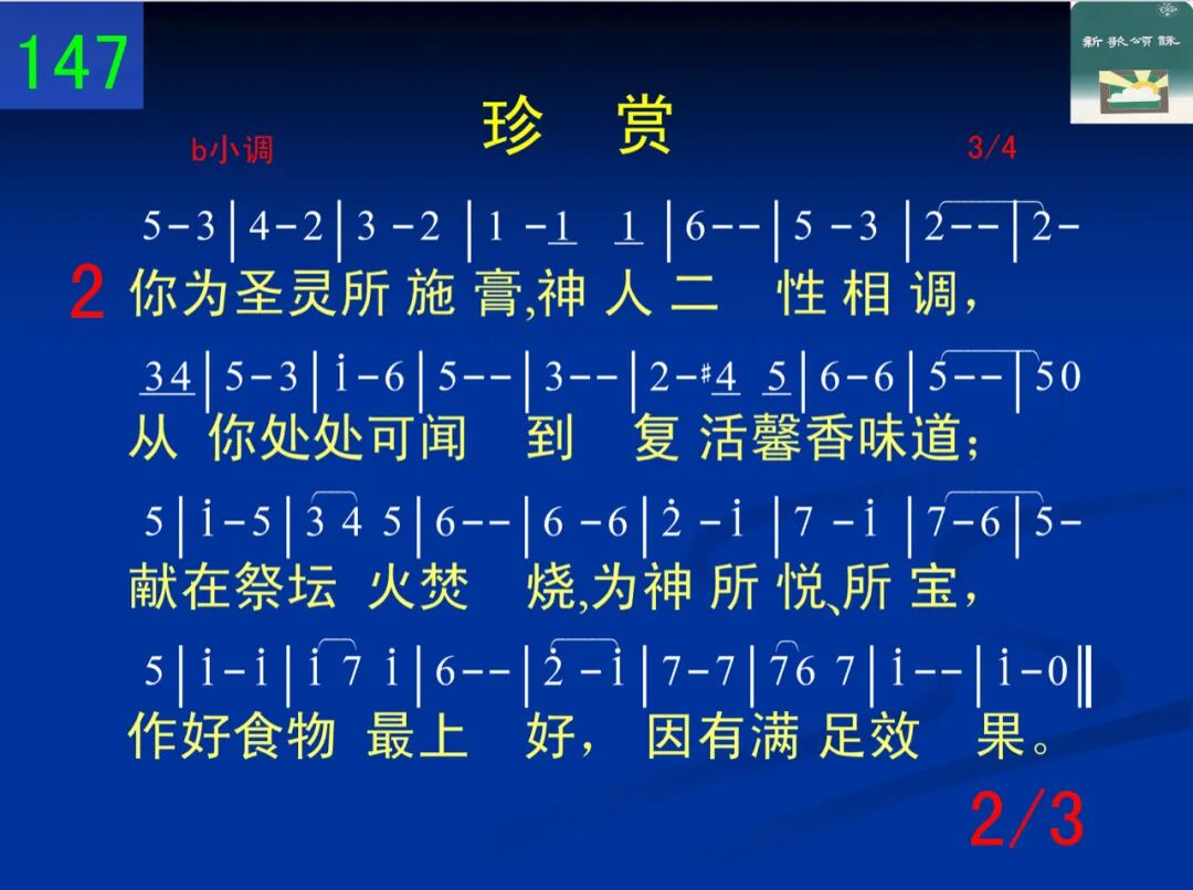你的人性真超凡,美丽谁能尽言,柔细、纯良又甘甜,有如无酵细面;经历风霜和磨碾,苦难忧患多面,不过更显你完全,我们珍赏、纪念。 二 你为圣灵所施膏,神人二性相调,从你处处可闻到复活馨香味道;献在祭坛火焚烧,为神所悦、所宝,作好食物最上好,因有满足效果。 三 如此甘美的素祭,我心实在称奇,在神圣别会幕里,逐日享受不已;借这早晚常献祭,神前事奉加力,直到完全充满你,象你,得神欢喜。