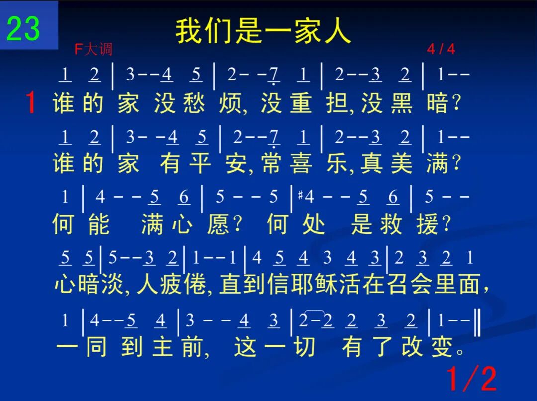 谁的家没愁烦,没重担,没黑暗?谁的家有平安,常喜乐,真美满?何能满心愿?何处是救援?心暗淡,人疲倦,直到信耶稣,活在召会里面,一同到主面前,这一切有了改变。 二 我的家没愁烦,没重担,没黑暗,我的家有平安,常喜乐,真美满;个个享恩典,救恩真完全,神爱怜,人称羡,惟愿神计划,主心意能实现,全家齐颂赞:“我的家在伊甸园。“