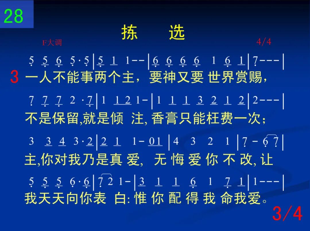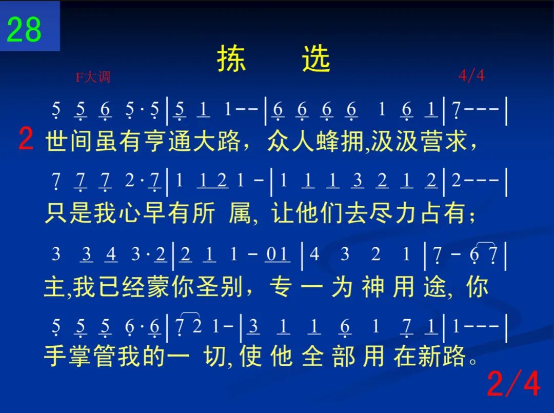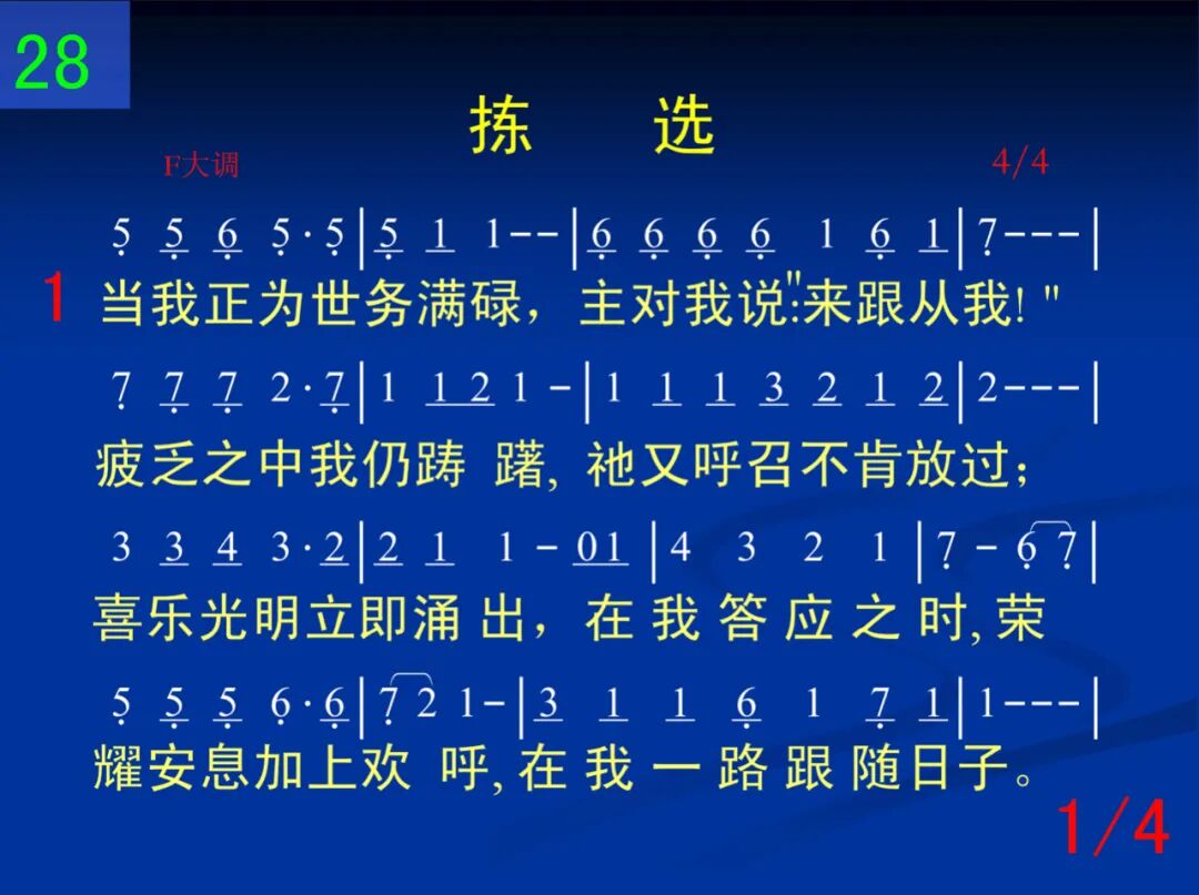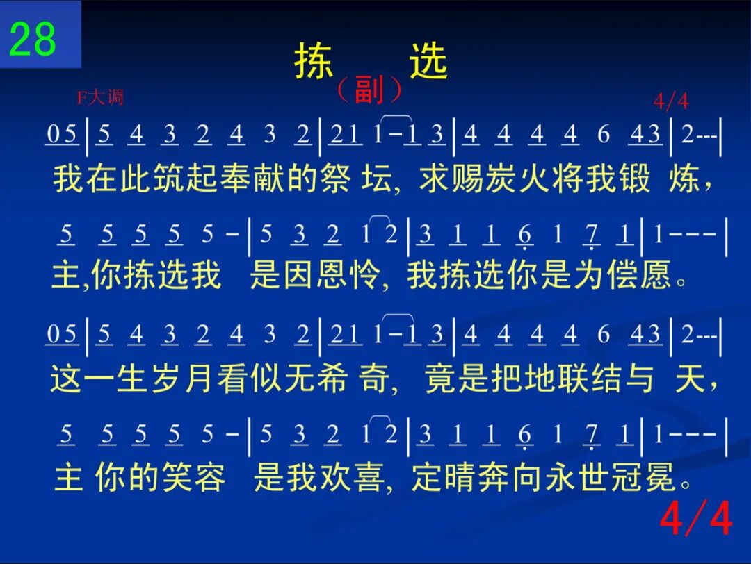 当我正为世务满碌,主对我说:”来跟从我!”疲乏之中我仍踌躇,祂又呼召不肯放过;喜乐光明立即涌出,在我答应之时,荣耀安息加上欢呼,在我一路跟随日子。 我在此筑起奉献的祭坛,求赐炭火将我锻炼,主,你拣选我是因恩怜,我拣选你是为偿愿。这一生岁月看似无希奇,竟是把地联结与天,主你的笑容是我欢喜,定晴奔向永世冠冕。 二 世间虽有亨通大路,众人蜂拥,汲汲营求,只是我心早有所属,让他们去尽力占有;主,我已经蒙你圣别,专一为神用途,你手掌管我的一切,使他全部用在新路。 我在此筑起奉献的祭坛,求赐炭火将我锻炼,主,你拣选我是因恩怜,我拣选你是为偿愿。这一生岁月看似无希奇,竟是把地联结与天,主你的笑容是我欢喜,定晴奔向永世冠冕。 三 一人不能事两个主,要神又要世界赏赐,不是保留,就是倾注,香膏只能枉费一次;主,你对我乃是真爱,无悔爱你不改,让我天天向你表白:惟你配得我命我爱。 我在此筑起奉献的祭坛,求赐炭火将我锻炼,主,你拣选我是因恩怜,我拣选你是为偿愿。这一生岁月看似无希奇,竟是把地联结与天,主你的笑容是我欢喜,定晴奔向永世冠冕。