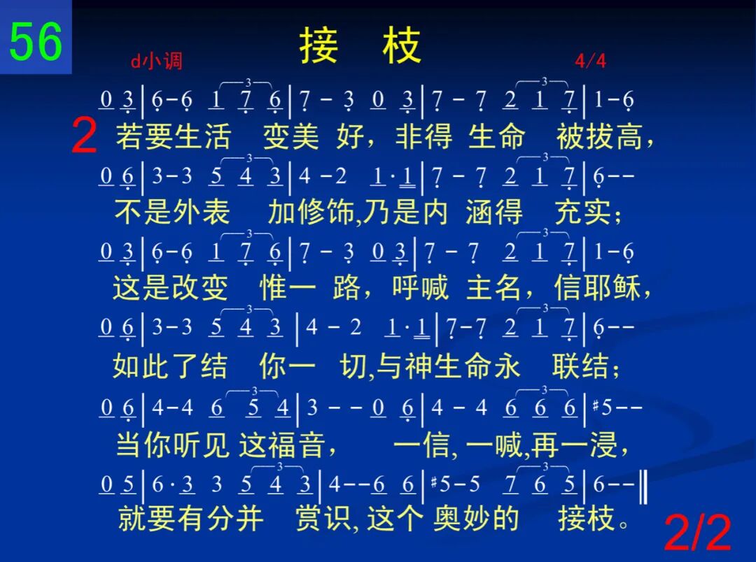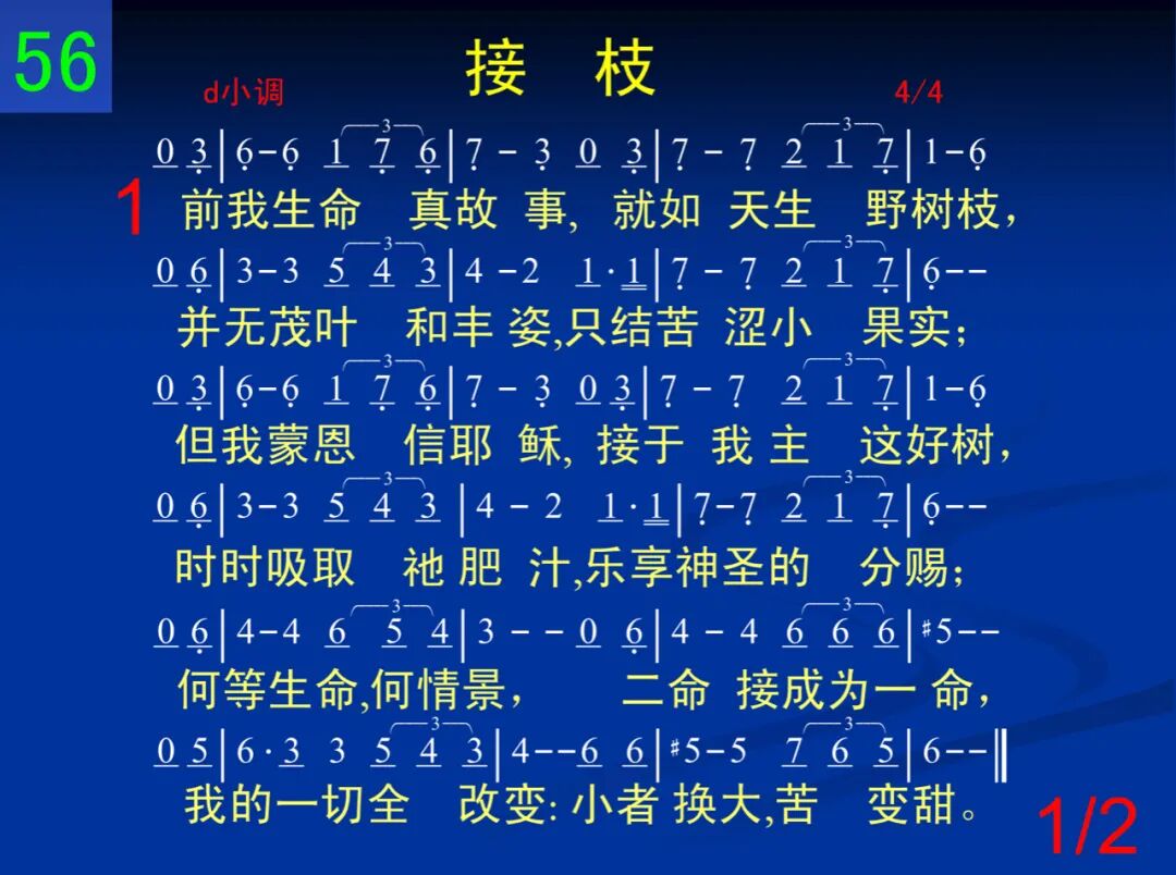前我生命真故事,如天生野树枝,并无茂叶和丰姿,只结苦涩小果实;但我蒙恩信耶稣,接于我主这好树,时时吸取祂肥汁,乐享神圣的分赐;何等生命,何情景,二命接成为一命,我的一切全改变:小者换大,苦变甜。 二 若要生活变美好,非得生命被拔高,不是外表加修饰,乃是内涵得充实;这是改变惟一路,呼喊主名,信耶稣,如此了结你一切,与神生命永联结;当你听见这福音,一信,一喊,再一浸,就要有分并赏识,这个奥妙的接枝。