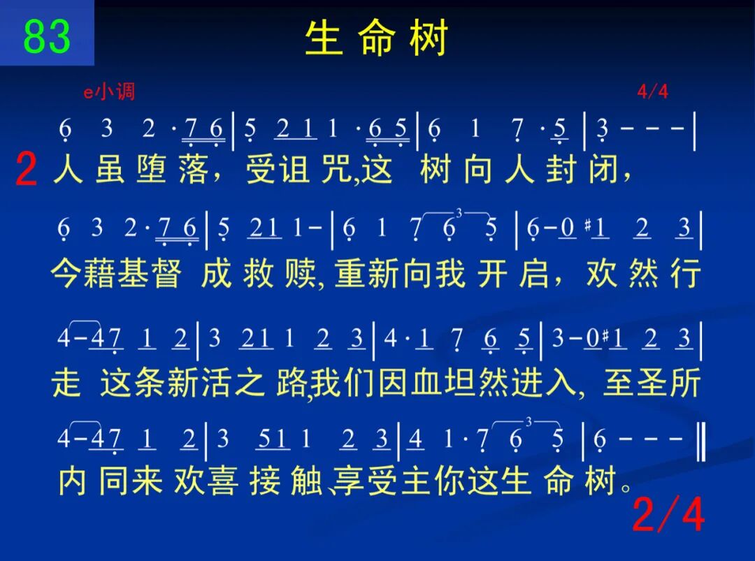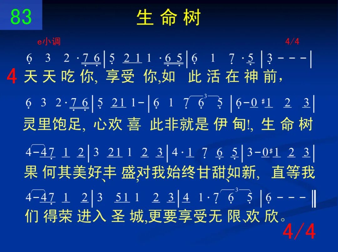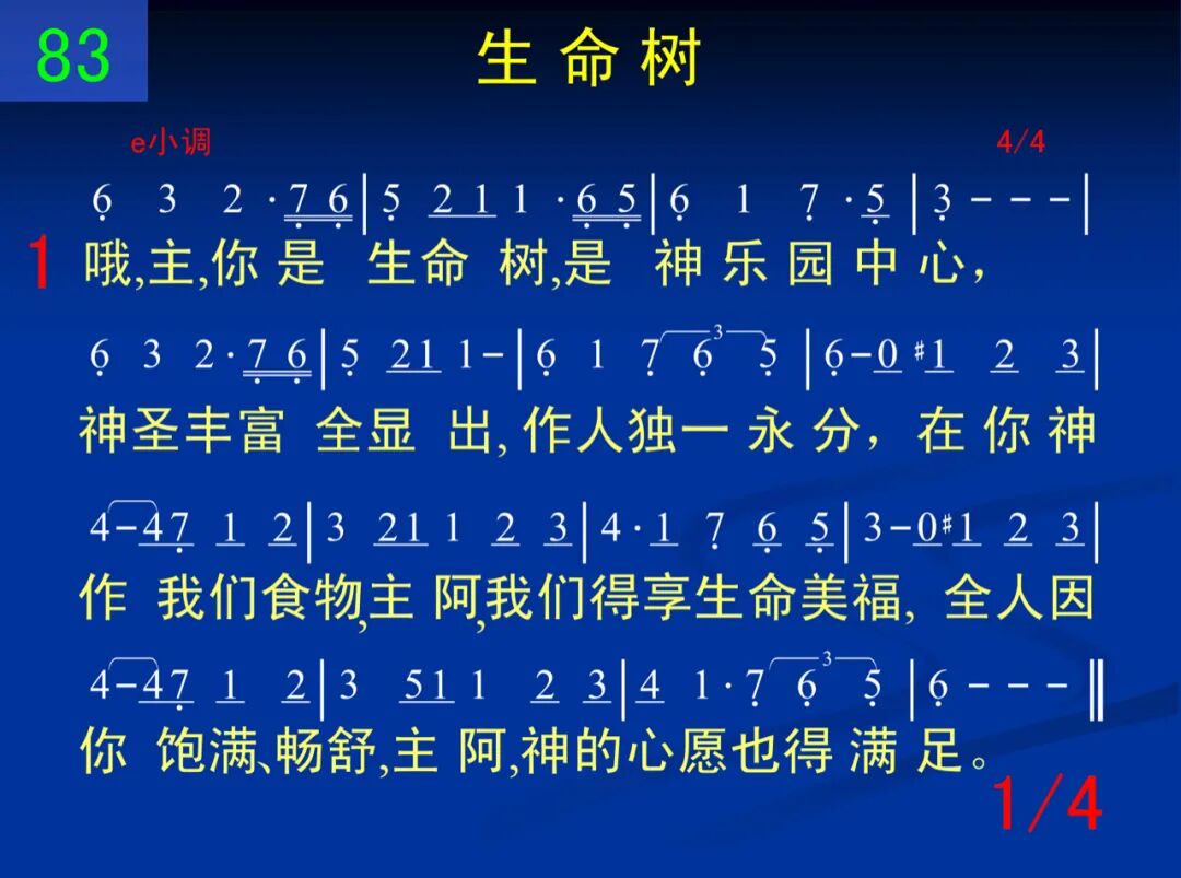 哦,主,你是生命树,是神乐园中心,神圣丰富全显出,作人独一永分,在你神作我们食物,主阿,我们得享生命美福,全人因你饱满、畅舒,主阿,神的心愿也得满足。 二 人虽堕落,受诅咒,这树向人封闭,今藉基督成救赎,重新向我开启,欢然行走这条新活路,我们因血坦然进入,至圣所内同来欢喜接触、享受主你这生命树。 三 你今化身在话里,人可便利取得,若要享你作实际,必须用灵方可;你话就是你的神圣己,祷读这话就是吃你,我们藉此与你调和为一,直到全人充满了你。 四 天天吃你,享受你,如此活在神前,灵里饱足,心欢喜此非就是伊甸!,生命树果何其美好、丰盛,对我始终甘甜、如新,直等我们得荣进入圣城,更要享受无限、欢欣。