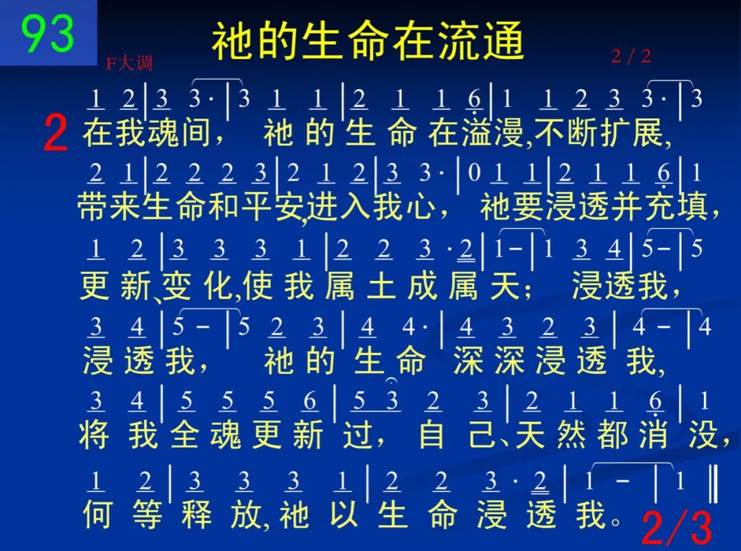 在我灵中,祂的生命在流通,流通不停,光照、运行又感动,使我洁净,享受神圣的供应,我今洋溢在祂生命滋润中;滋润我,滋润我,愿祂生命天天滋润我,使我灵又新又活,得着基督多又多,何等甘甜,祂以生命滋润我。 二 当灵充满,祂的生命就溢漫,向魂扩展,满有生命和平安,更新、改变,所有属土变属天,祂要浸透我里面每一心间;浸透我,浸透我,愿祂生命深深浸透我,将我魂全更新过,自己、天然都消没,何等满足,祂以生命浸透我。 三 我心盼望,祂的生命得显彰,我脸瞻仰,返照基督的荣光,与主同王,模成我主的形像,身体且要改变形状像祂样;变化我,变化我,愿祂生命部部变化我,能以建造神居所,一同承受神的国,何等美妙,祂以生命变化我。